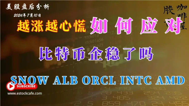 纳指短线做高抛准备 比特币企稳了吗 个股分析 SNOW ORCL ALB INTC AMD 07/10/2024