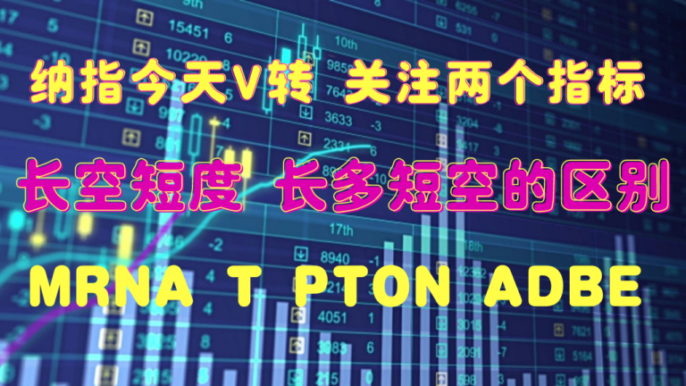 美股盘后分析 纳指今天V型反转 关注两个指标 长多短空 长空短多的区别 个股分析 MRNA T PTON ADBE